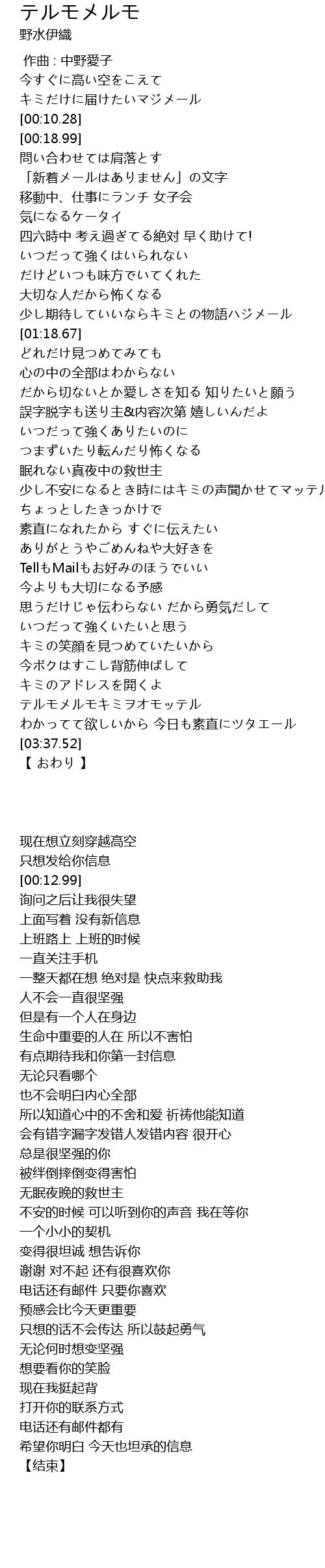 | [03:22.20] | テルモメルモキミヲオモッテル |
