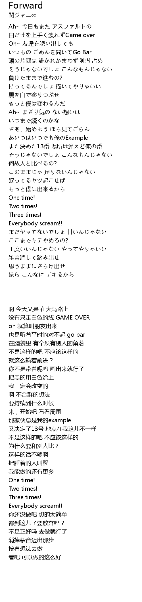 | [00:40.080] | いつもの ごめんを聞いてGo Bar |