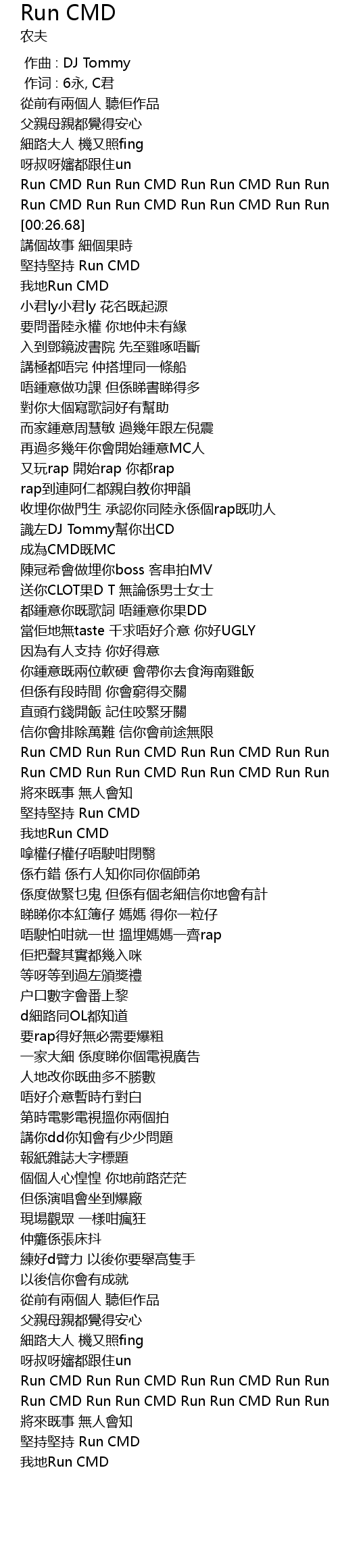 | [01:29.81] | Run CMD Run Run CMD Run Run CMD Run Run |