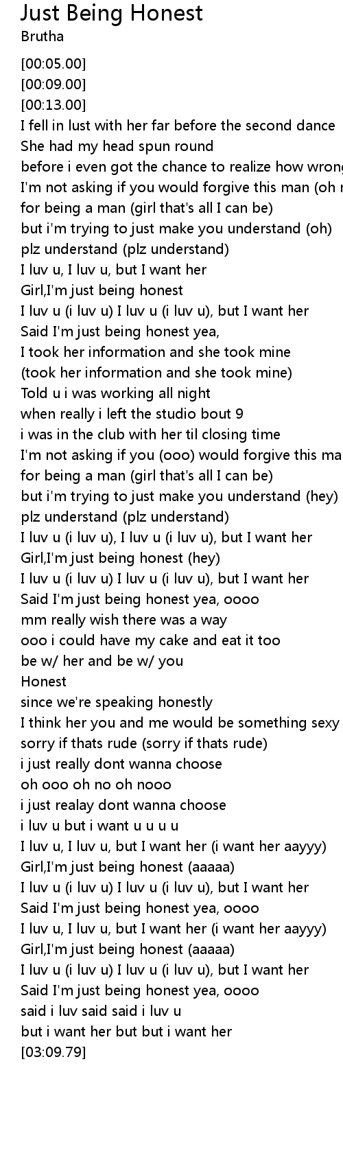 | [02:57.21] | Said I'm just being honest yea, oooo |