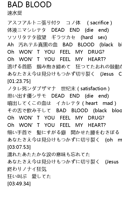 | [00:38.86] | Ah 汚れテル真黒の血 BAD BLOOD (black blood) |