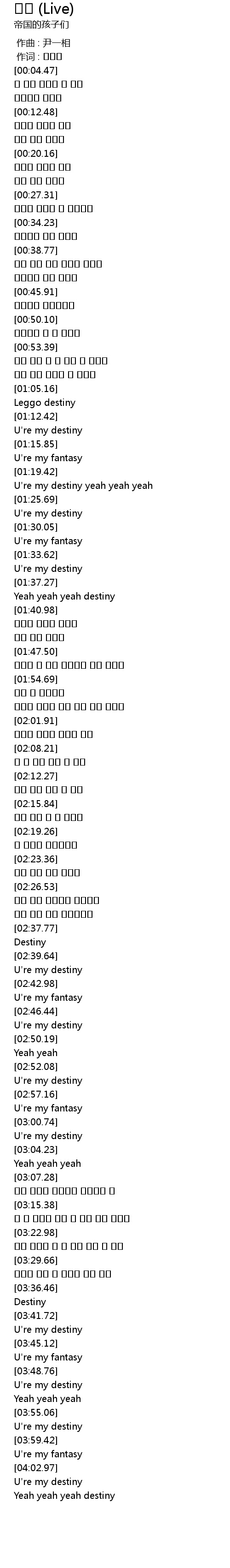 | [01:21.66] | U're my destiny yeah yeah yeah |