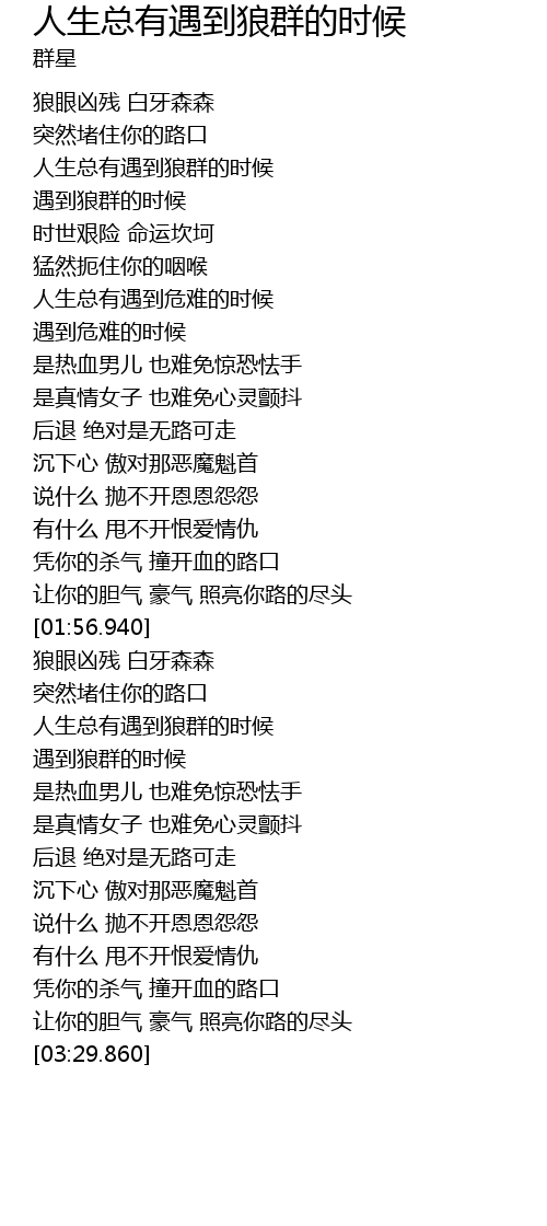 | [02:23.560] | 人生总有遇到狼群的时候 |