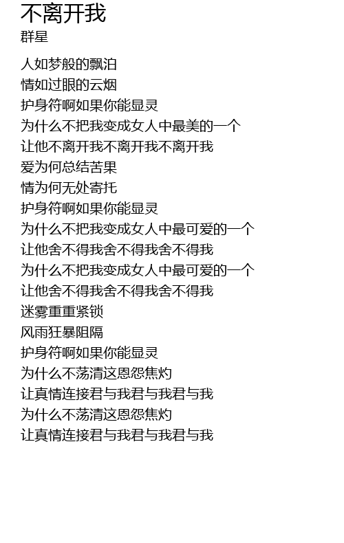 | [00:43.000] | ràng tā bù lí kāi wǒ bù lí kāi wǒ bù lí kāi wǒ |