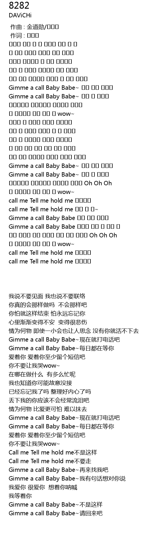 | [02:53.470] | Gimme a call Baby Babe 다시 나를 찾아줘 |