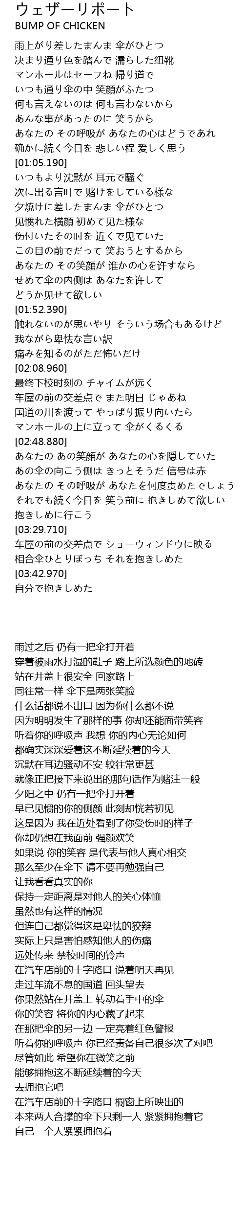 | [02:44.500] | マンホールの上に立って 伞がくるくる |