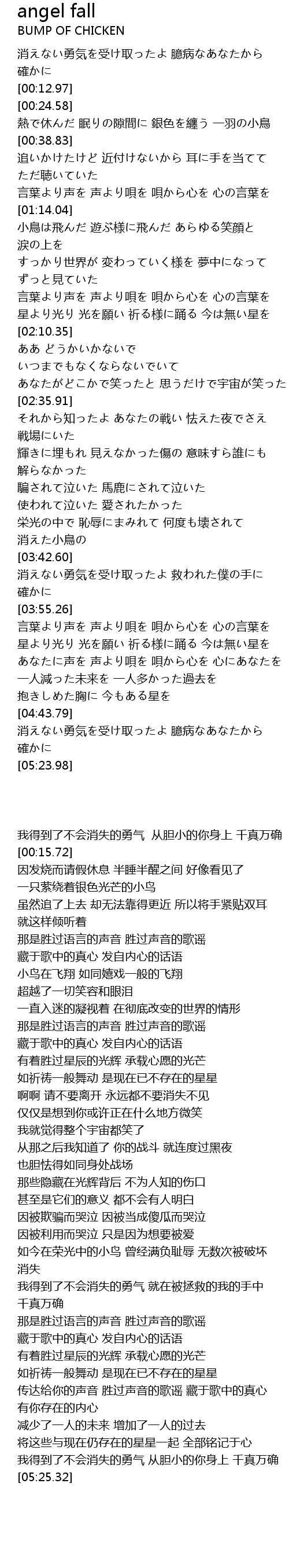 | [03:32.17] | 栄光の中で 恥辱にまみれて 何度も壊されて 消えた小鳥の |