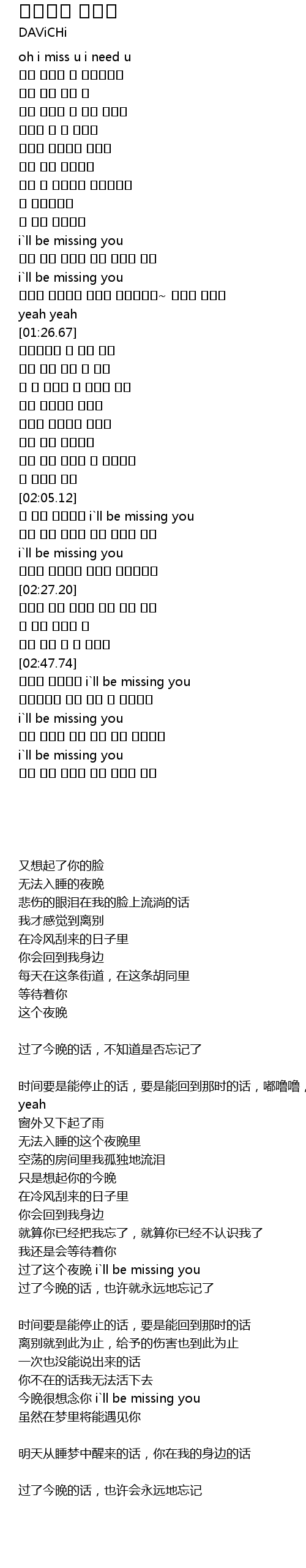 | [02:05.33] | 이 밤이 다가도록 i`ll be missing you |