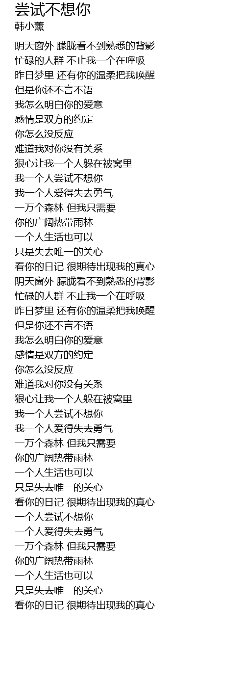 | [02:38.53] | 我一个人尝试不想你 |