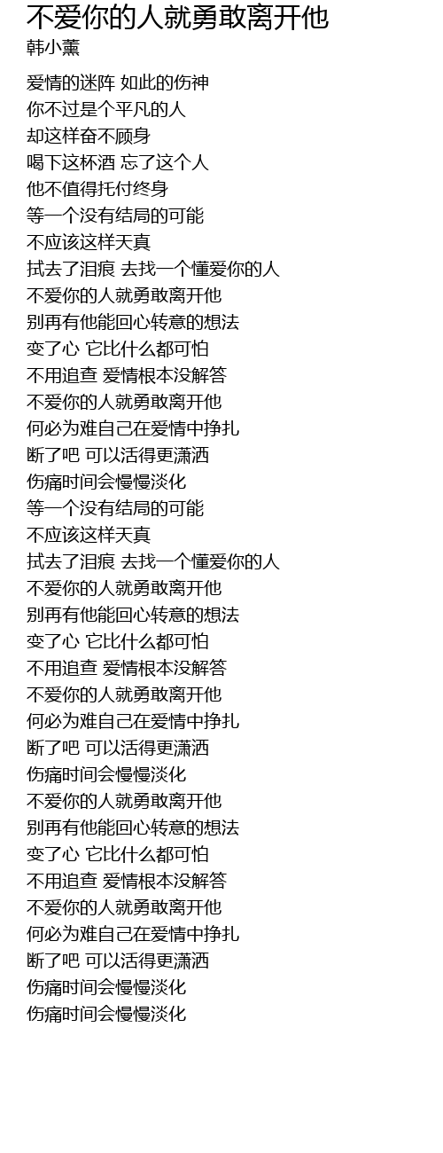 | [03:10.18] | 不爱你的人就勇敢离开他 |