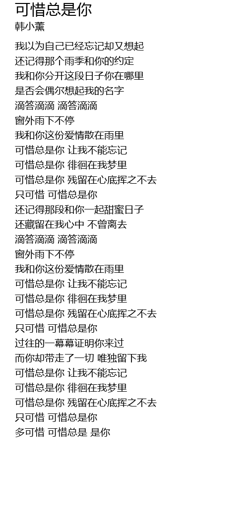| [03:22.47] | 多可惜 可惜总是 是你 |