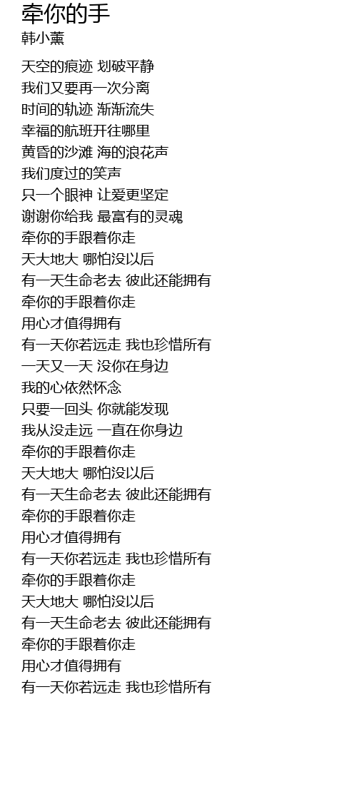 | [01:38.26] | qiān nǐ de shǒu gēn zhe nǐ zǒu |
