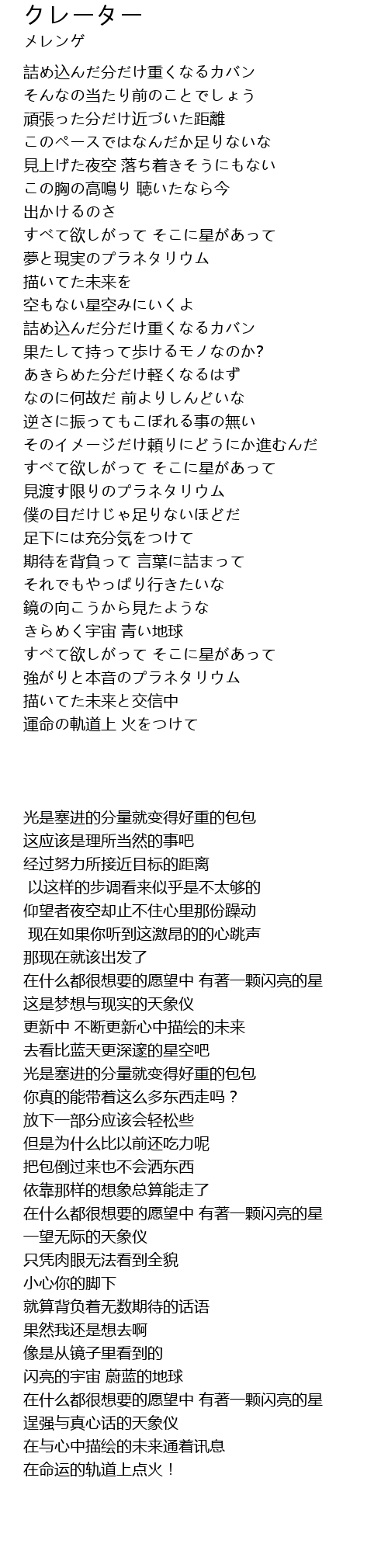 | [01:53:85] | すべて欲しがって そこに星があって |