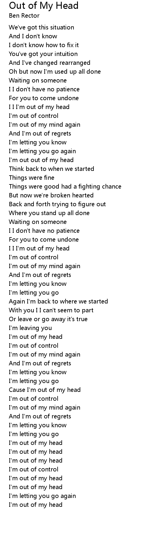 Cause I'm out of my head |