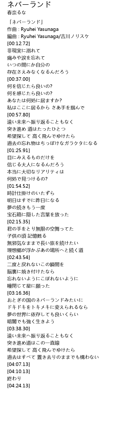 | [03:17.07] | おとぎの国のネバーランドみたいに |