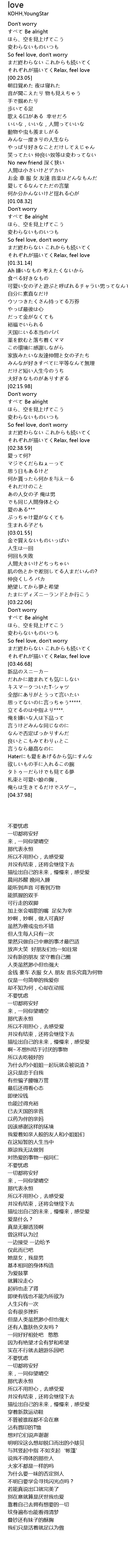 | [01:19.27] | So feel love, don't worry |