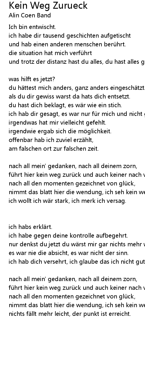 | Song | Kein Weg Zurueck |