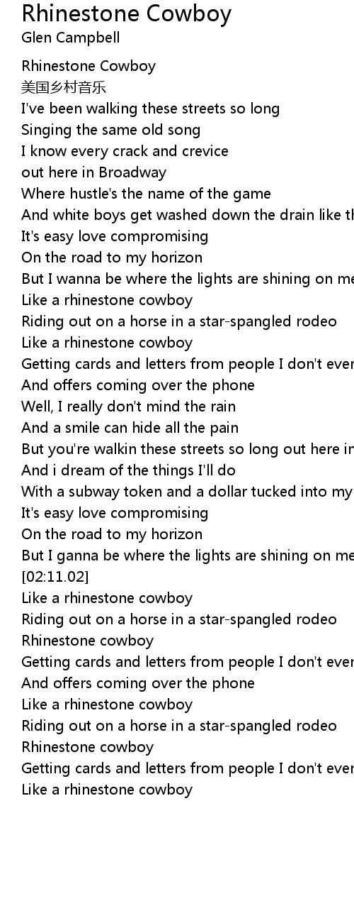 | [00:02.77] | Rhinestone Cowboy |