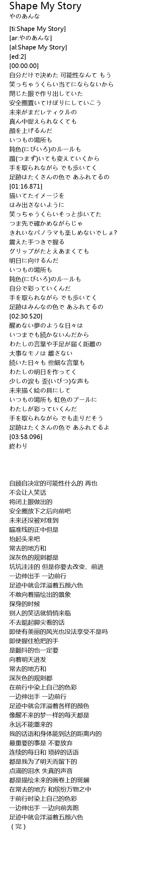 [ti:Shape My Story] |