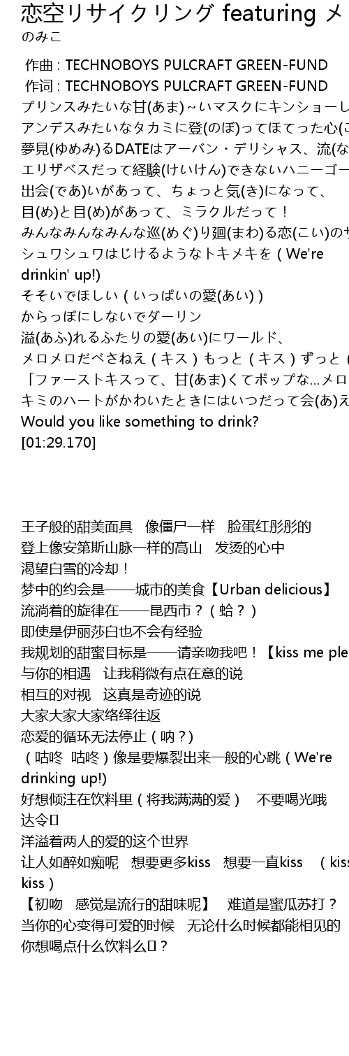 | [00:01.00] | 作词 : TECHNOBOYS PULCRAFT GREEN-FUND |