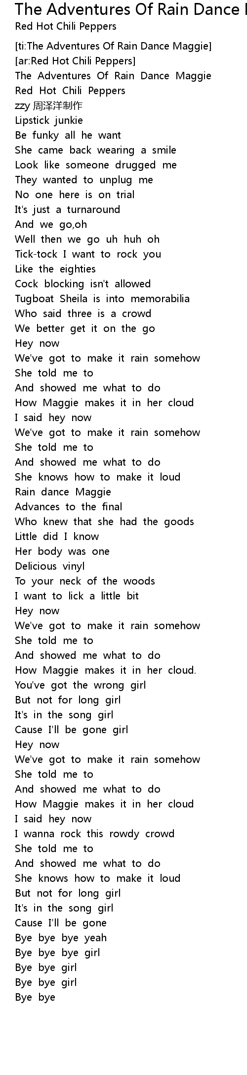 | [00:06.804] | The Adventures Of Rain Dance Maggie |