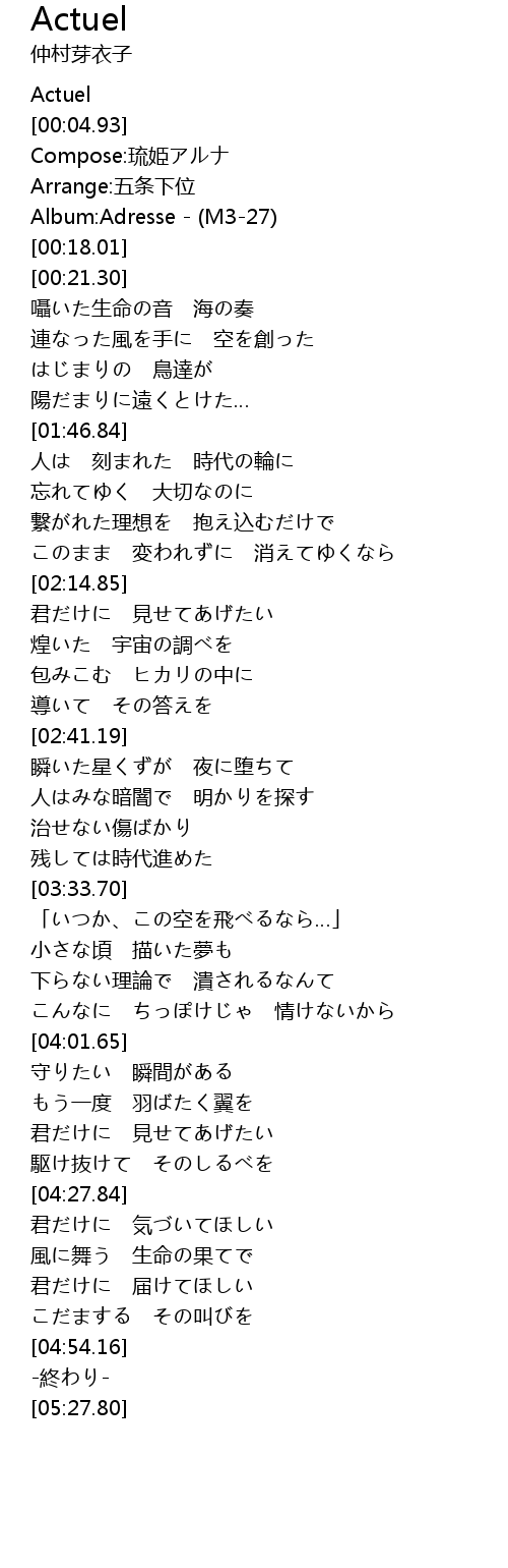 | [00:08.17] | Compose:琉姫アルナ |