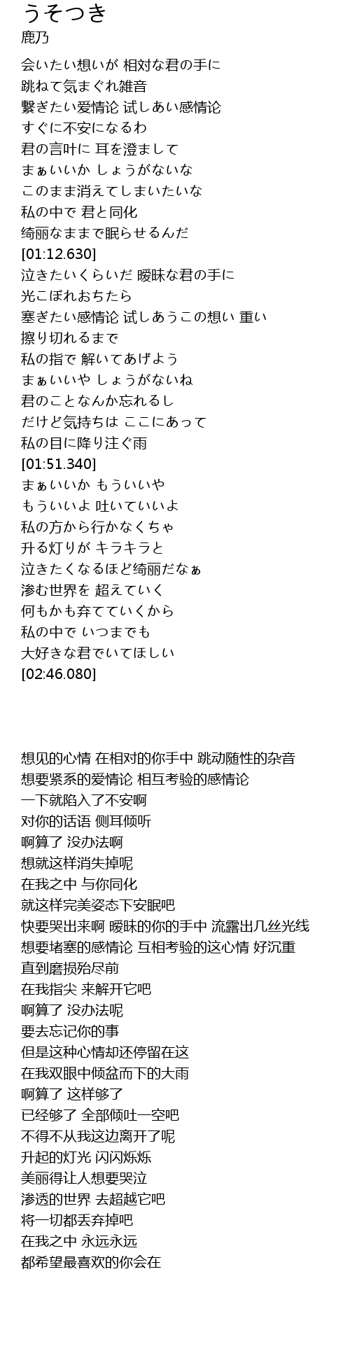 | [00:44.730] | 繋ぎたい爱情论 试しあい感情论 すぐに不安になるわ |