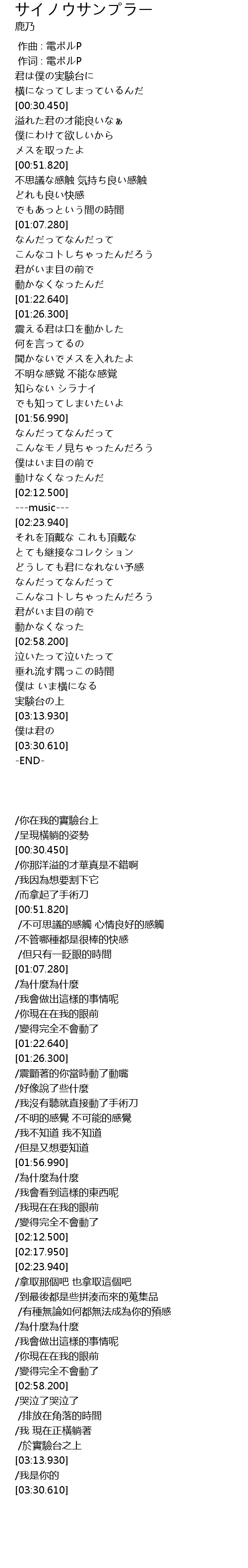 | [01:38.280] | 聞かないでメスを入れたよ |