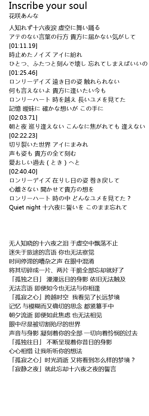 | [03:12.61] | Quiet night 十六夜に誓いを このまま忘れて |