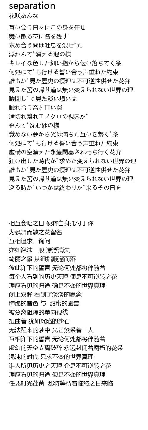 | [02:41.708] | 虚構の空潰えた永遠閉塞され朽ち行く花弁 |