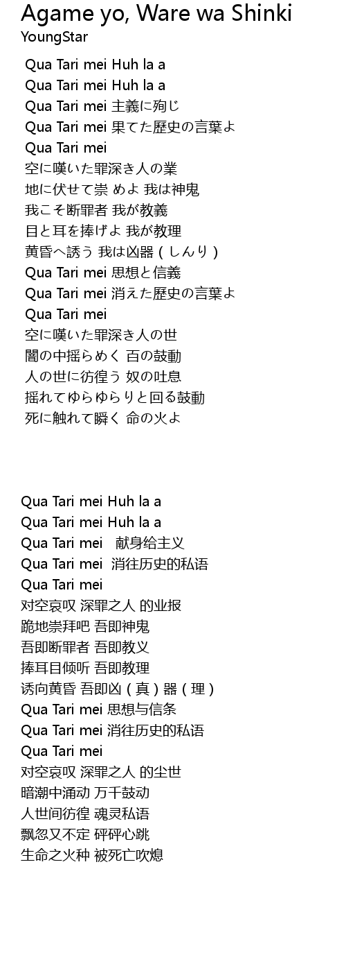 | [00:58:000] | Qua Tari mei 果てた歷史の言葉よ |