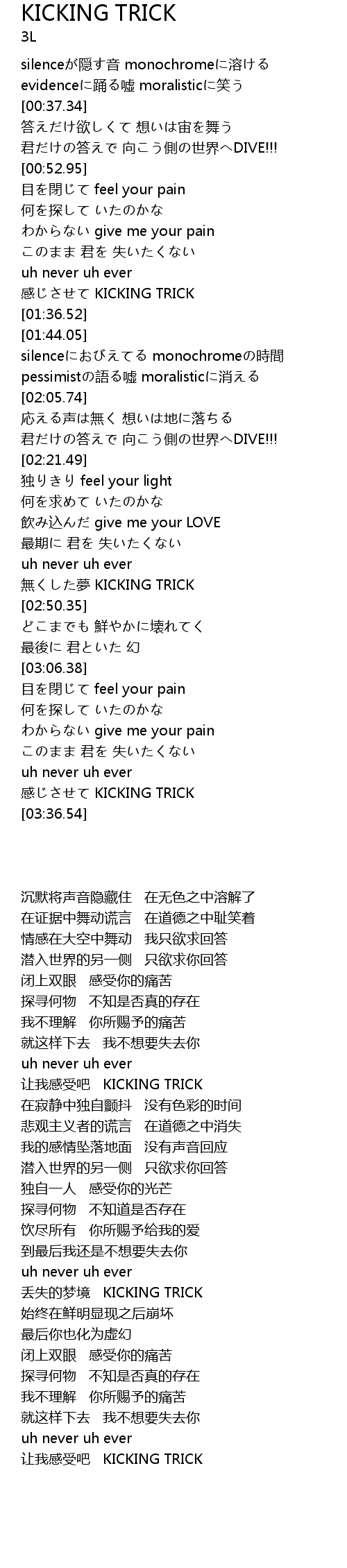 | [03:33.43] | 感じさせて KICKING TRICK |
