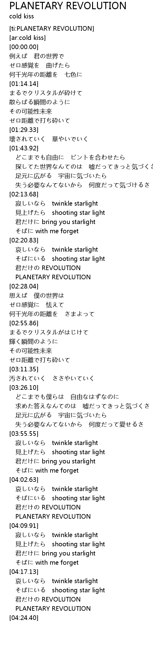 | [04:09.92] | 寂しいなら twinkle starlight |
