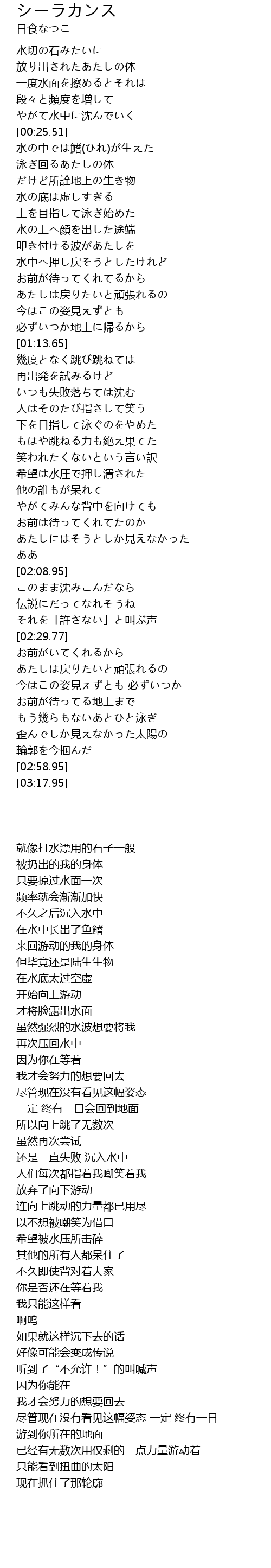 | [02:47.59] | もう幾らもないあとひと泳ぎ |