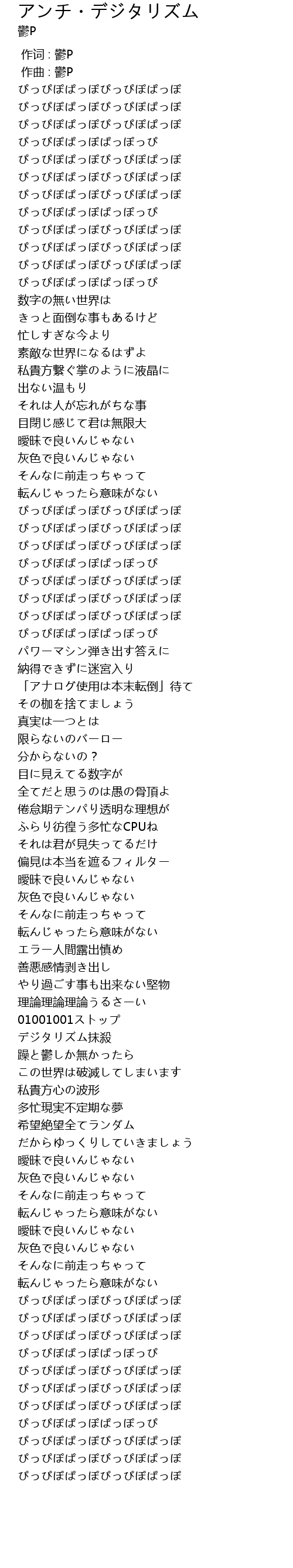 | [01:26.61] | ぴっぴぽぱっぽぱっぽっぴ |