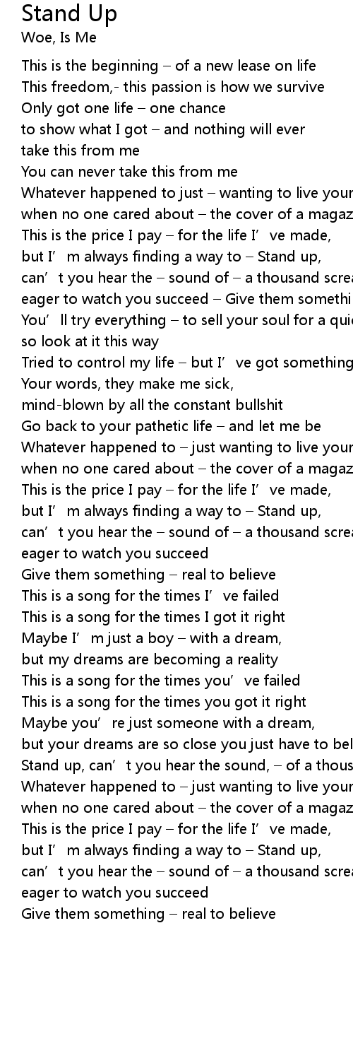 | Stand up, can' t you hear the sound, of a thousand screaming voices | |