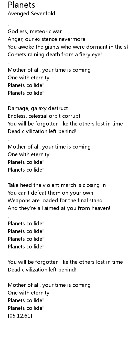 Endless, celestial orbit corrupt |