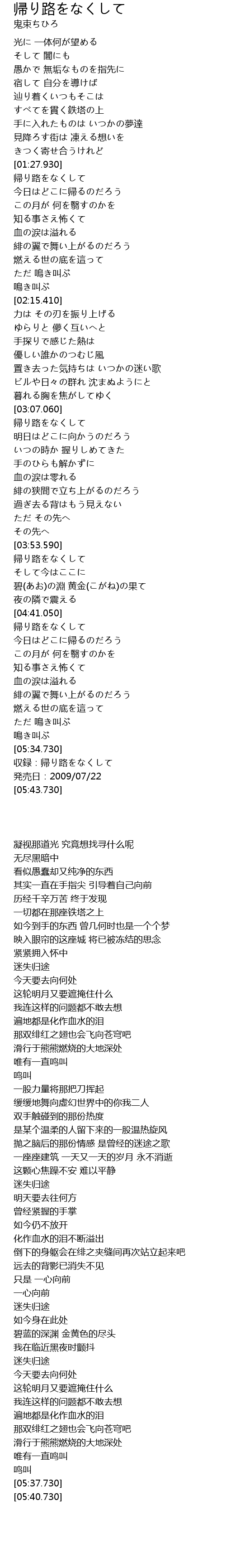 | [04:47.270] | 今日はどこに帰るのだろう |