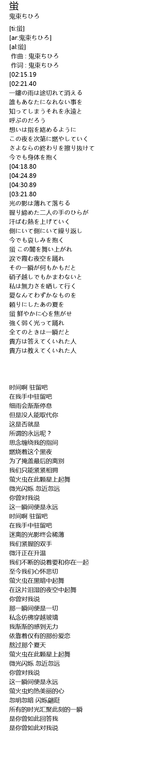 | [01:38.70][04:18.80] | 蛍 この星を舞い上がれ |