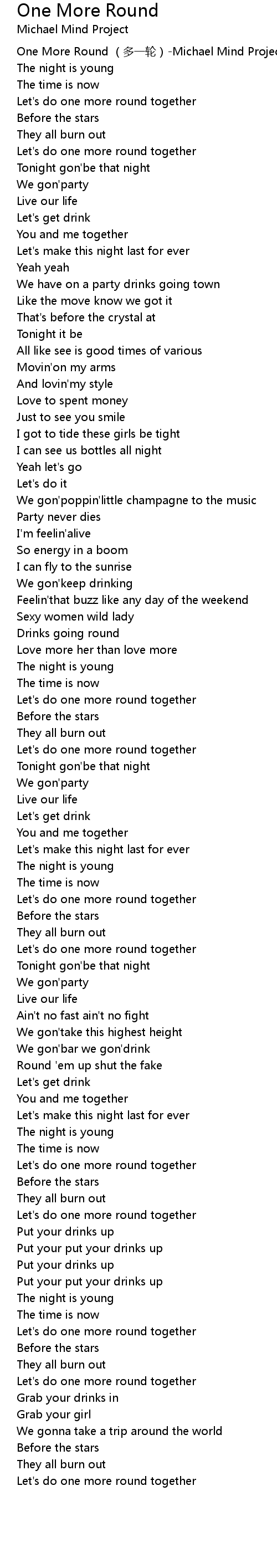 | [00:00.00] | One More Round duō yī lún Michael Mind Project |