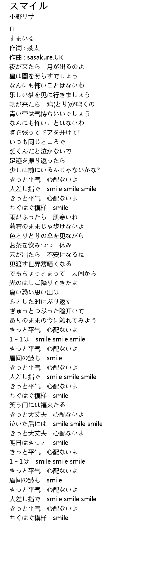 | [02:18.379] | 1+1は smile smile smile |