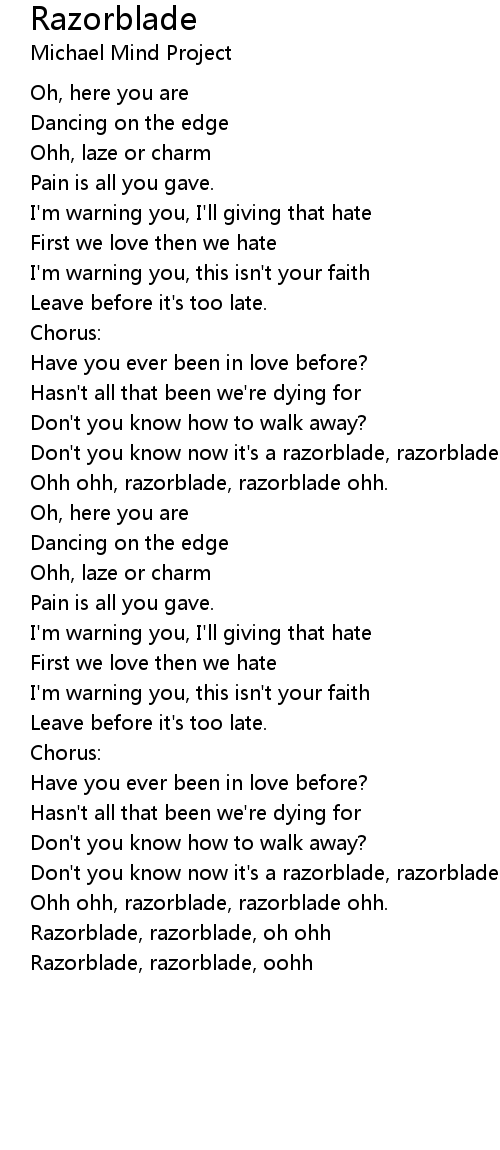 Don't you know now it's a razorblade, razorblade, razorblade |