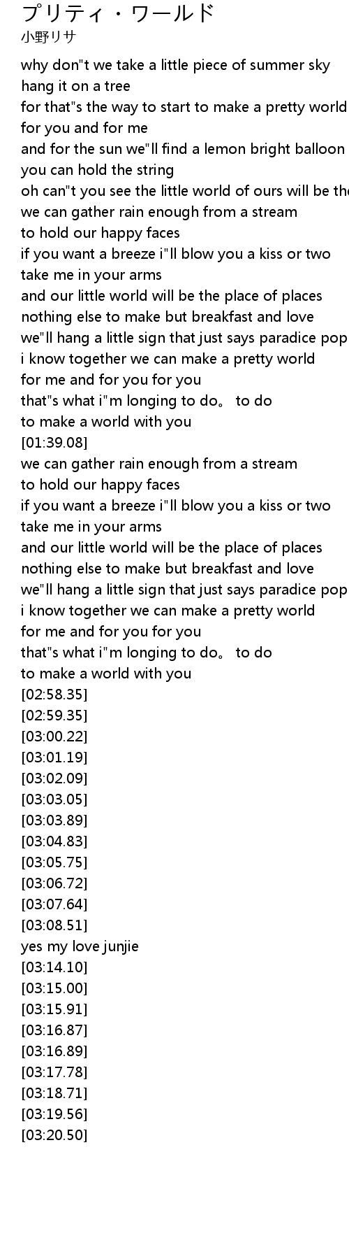 | [00:23.35] | for that" s the way to start to make a pretty world |