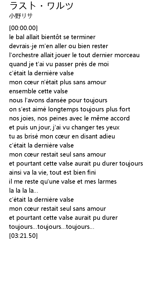 | [02:50.07] | et pourtant cette valse aurait pu durer toujours…toujours…toujours… |