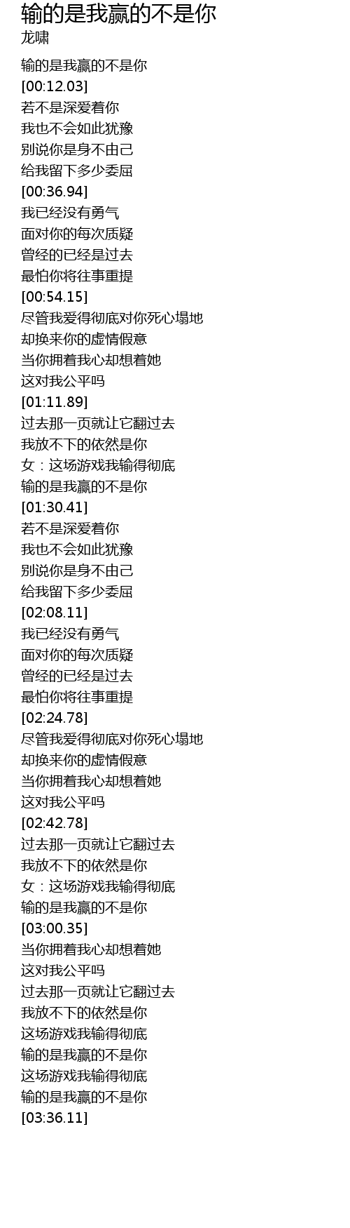 | [03:31.24] | 输的是我赢的不是你 |