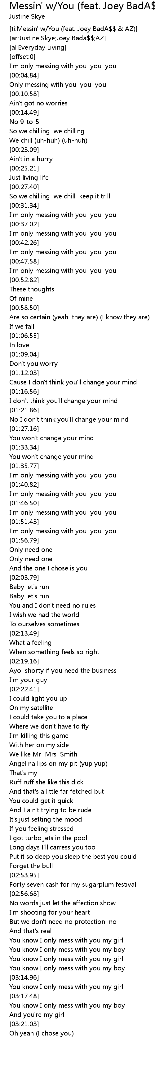[ti:Messin' w/You (feat. Joey BadA$$ & AZ)] |