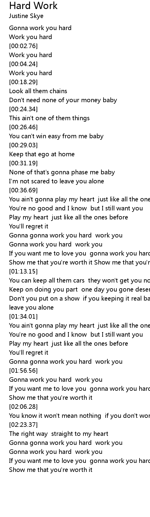 Gonna gonna work you hard work you |