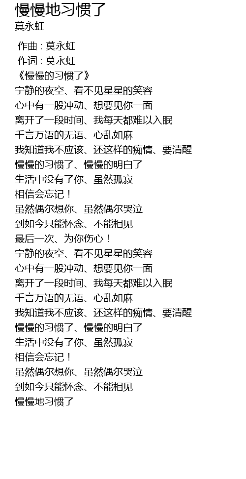 | [01:15.53] | 慢慢的习惯了、慢慢的明白了 |