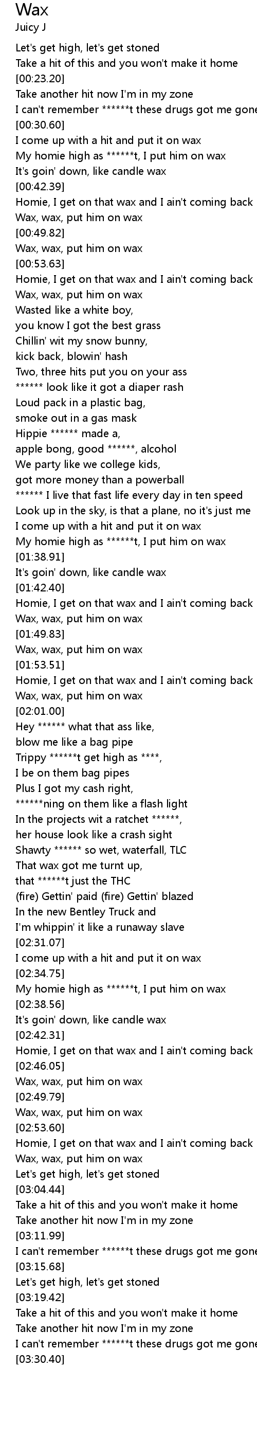 Homie, I get on that wax and I ain't coming back |