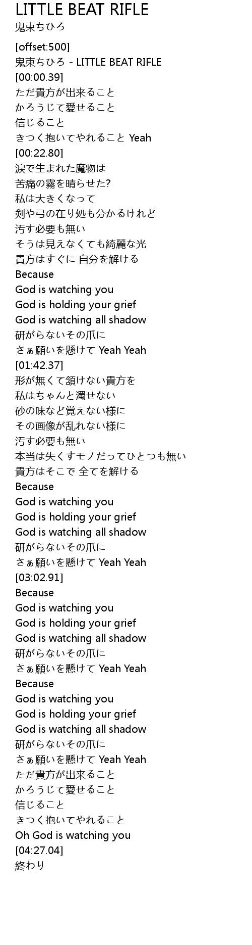 | [03:19.27] | God is watching you |